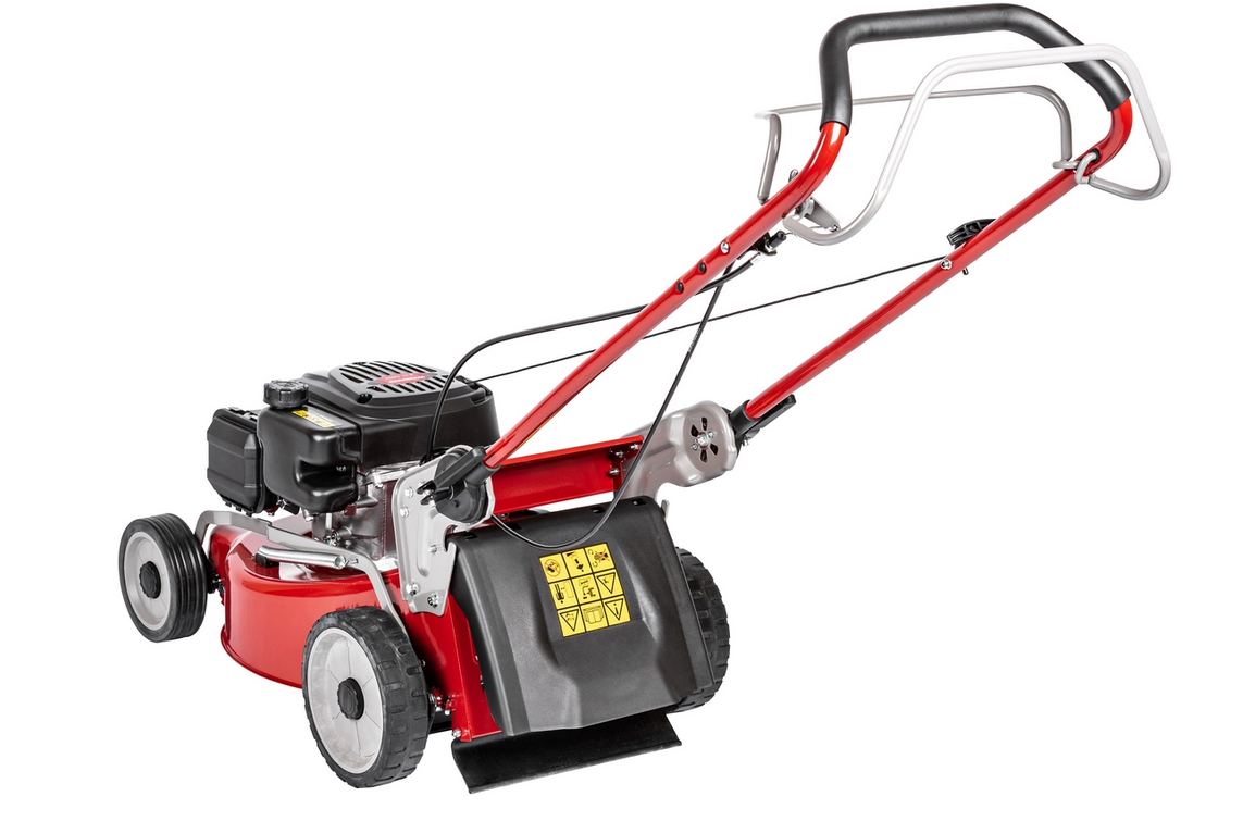 Obudowa kosiarki malowana jest proszkowo antykorozyjną farbą co w znacznym stopniu wydłuża żywotność maszyny. Szerokość robocza kosiarki wynosi 450mm a całkowity ciężar maszyny wynosi 37kg. Kosiarka jest lekka jak na kosiarkę z napędem dzięki czemu jest łatwa w prowadzeniu i nie obciąża niepotrzebnie silnika.